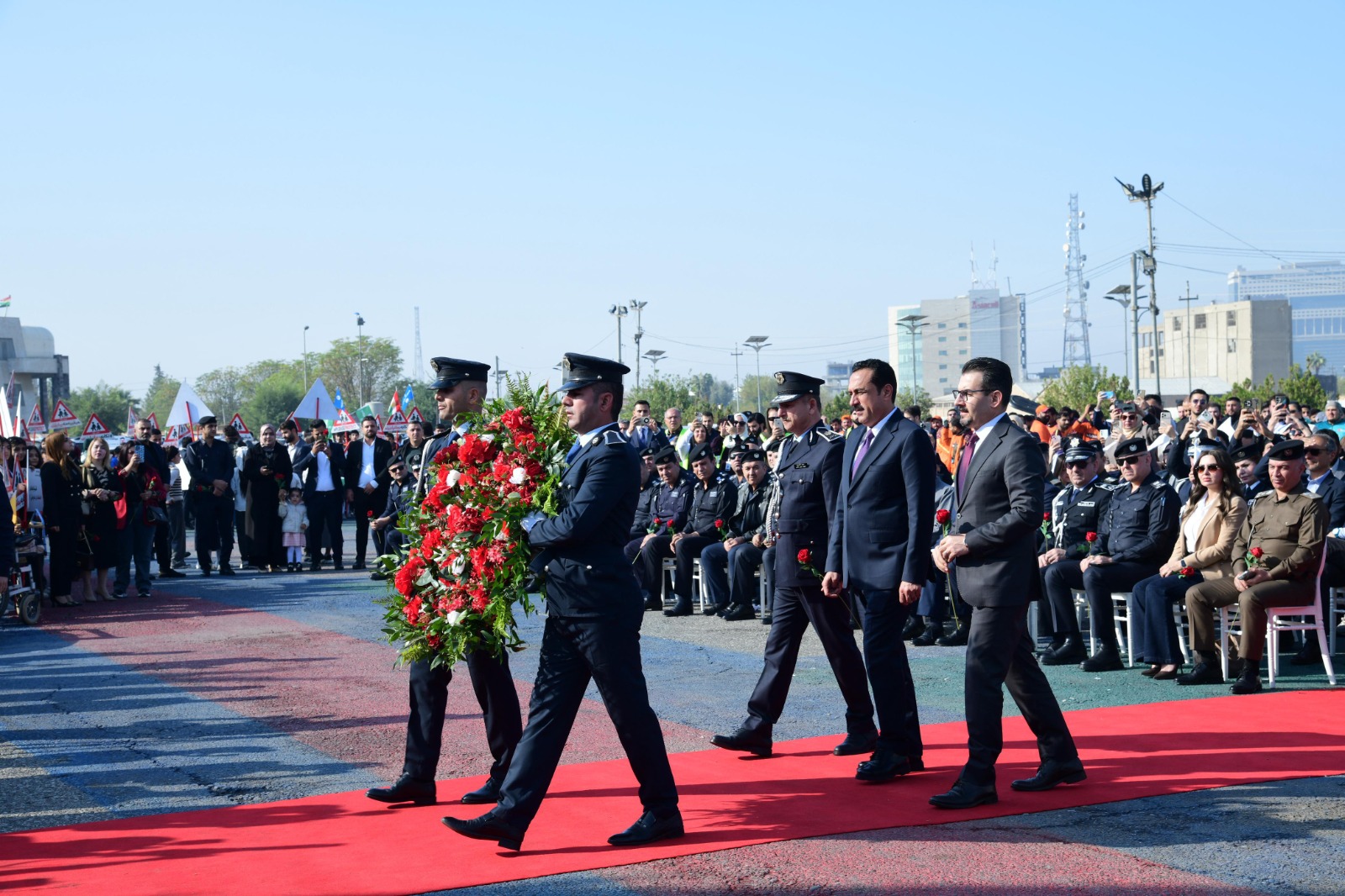 شهدت مدينة أربيل، الاثنين ١٧-١١-٢٠٢٥ مراسم خاصة لإحياء اليوم العالمي لضحايا حوادث الطرق، بحضور اللواء ديدار عمر قادر المدير العام للمرور في الإقليم، ومحافظ اربيل، والمدير العام لديوان وزارة الداخلية.