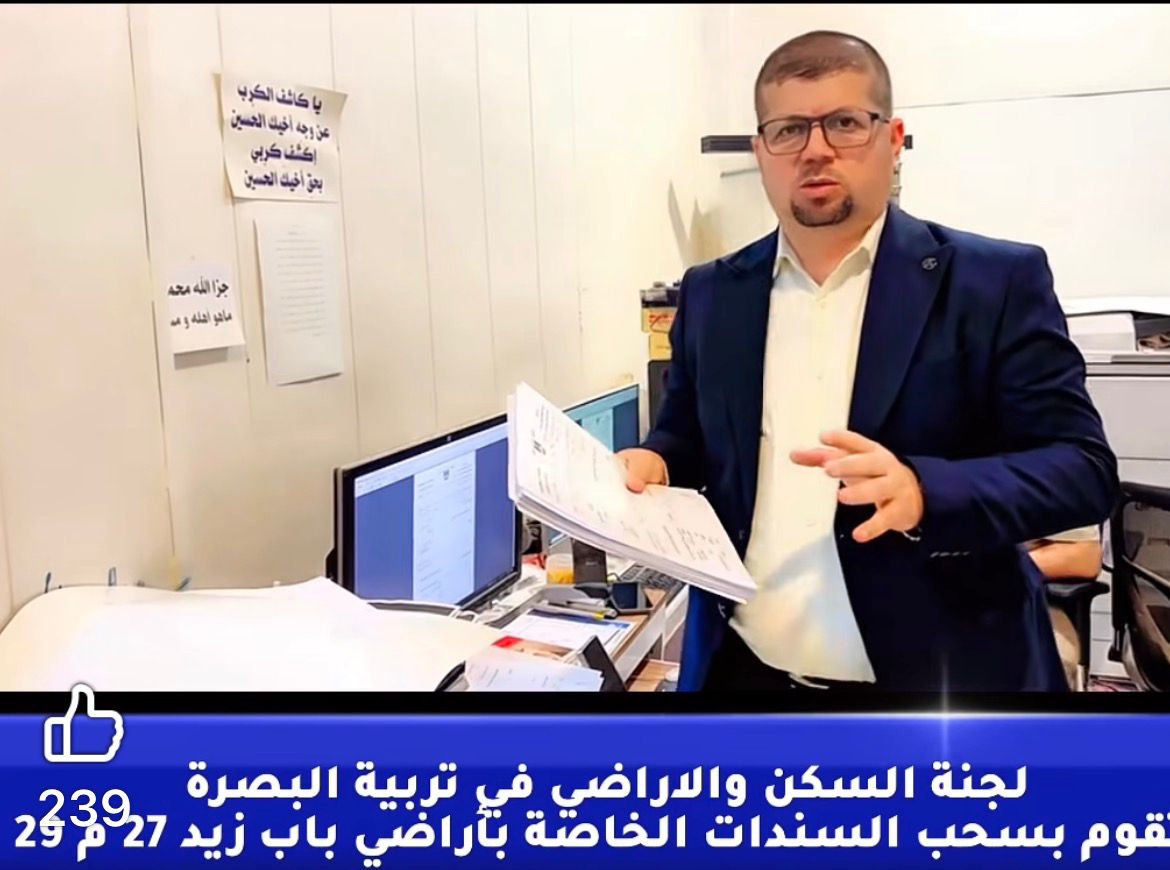 قدّمت الملاكات التعليمية والتدريسية والوظيفية في تربية البصرة بالغ شكرها وتقديرها إلى السيد محافظ البصرة الشيخ أسعد العيداني المحترم، وإلى السيد المدير العام لتربية البصرة المحترم، وإلى لجنة متابعة تخصيص الأراضي السكنية، تثمينًا لجهودهم الكبيرة والعمل الدؤوب الذي أثمر عن تخصيص قطع الأراضي السكنية لشريحة واسعة من كوادر التربية.